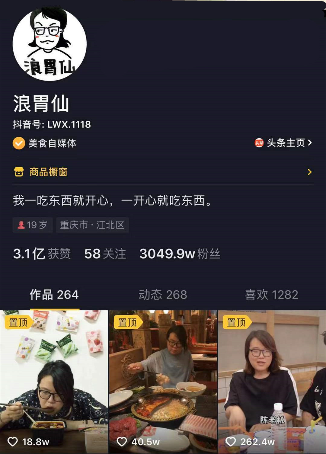 浪胃仙簡介,男,人稱「浪老師」,憑借著食量驚人的絕技行走江湖,經(jīng)常給餐飲店上課。2018年底從20w粉絲,到現(xiàn)在喜提3000w+粉絲,簡直就是人形刷粉機!