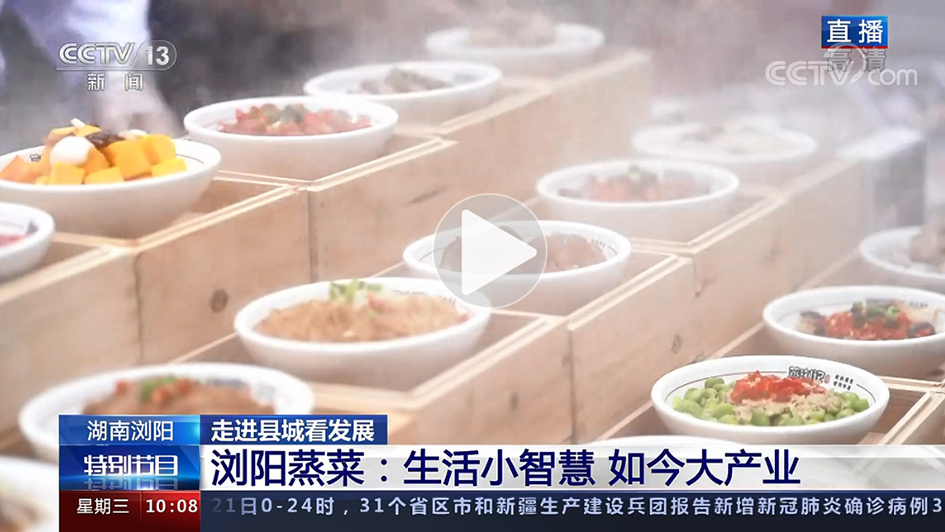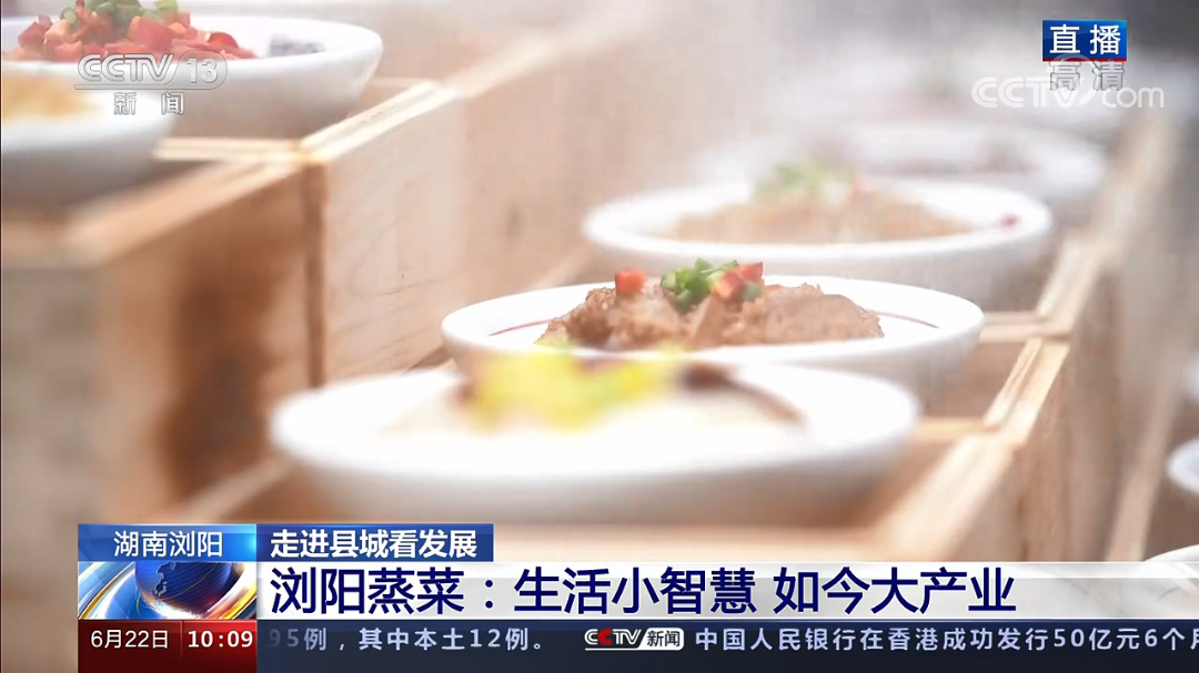 昨日,中央廣播電視總臺新聞頻道推出大型直播特別節(jié)目“走進縣城看瀏陽”。直播中,央視總臺記者姜文婧走進智慧瀏陽河文化商圈的文化創(chuàng)意集市,現(xiàn)場品嘗蒸瀏記帶來的地道瀏陽蒸菜。